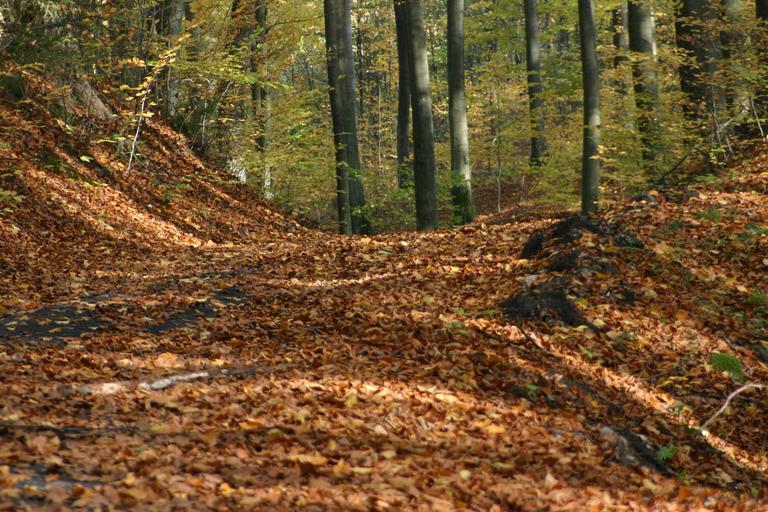 Keywords: forest foliage tree autumn nature park october way bronze dry leaves
