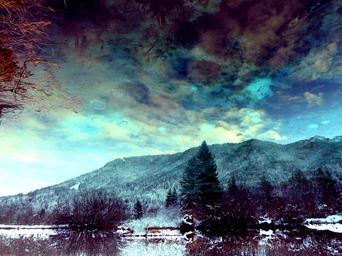 Keywords: forest lake clouds dark purple landscape reflection pine
