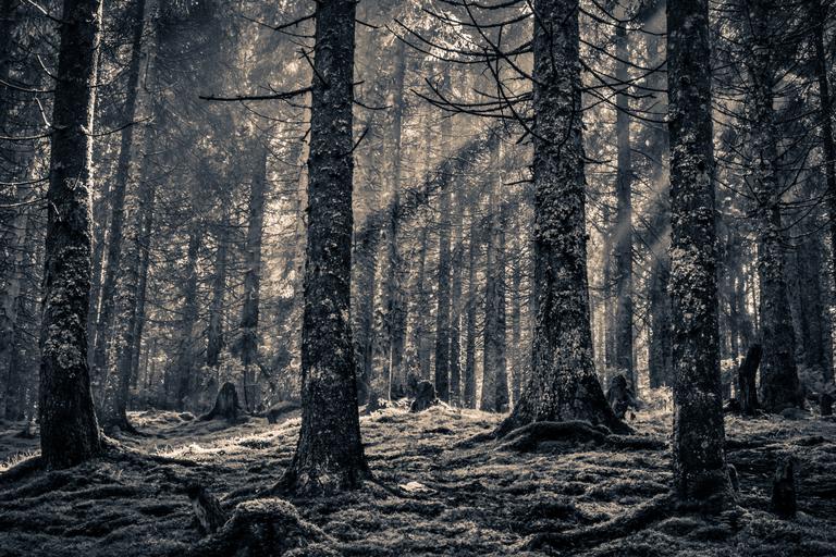 Keywords: forest pine forest pine black and white nature light wood light and shadow pine wood trees light game rumania transylvania bihar mountains ray