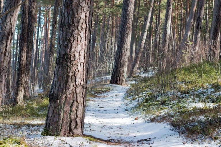 Keywords: pines conifer evergreen woods trees snow sunny spring forest jurmala latvia path road footpath trail track outdoor landscape tree plant Early spring in Jurmala forest, Latvia. Early spring in Jurmala forest, Latvia.