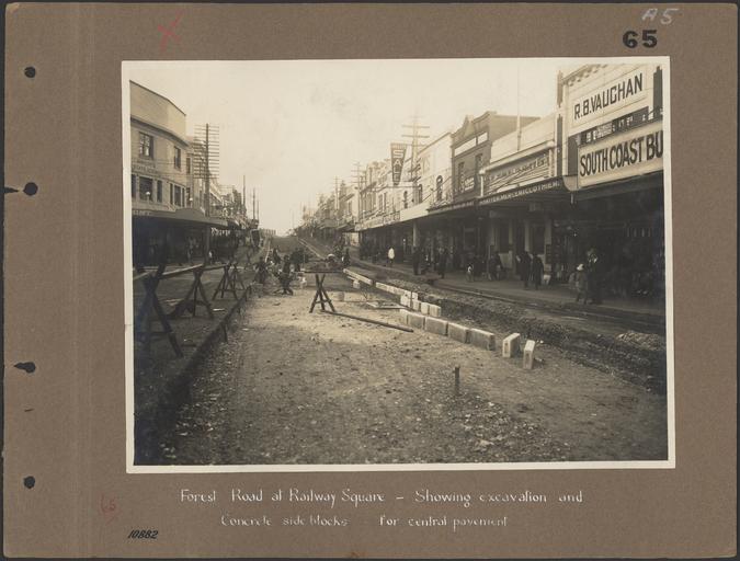 | Keywords: archives state records nsw staterecordsnsw newsouthwales blackandwhite roadworks hurstville 1926 photo border outdoor black and white Title: Forest Road at Railway Square - showing excavation and concrete side blocks for central pavement Dated: earlier than 31/12/1946 Digital ID: 20224_a038_000005 Rights: No known copyright restrictions www.records.nsw.gov.au/about-us/rights-and-permissions We'd love to hear from you if you use our photos/documents. Many other photos in our collection are available to view and browse on our website using Photo Investigator. Title: Forest Road at Railway Square - showing excavation and concrete side blocks for central pavement Dated: earlier than 31/12/1946 Digital ID: 20224_a038_000005 Rights: No known copyright restrictions www.records.nsw.gov.au/about-us/rights-and-permissions We'd love to hear from you if you use our photos/documents. Many other photos in our collection are available to view and browse on our website using Photo Investigator. |