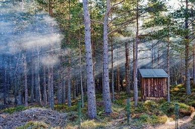 Keywords: forest sunbeam fog trees firs