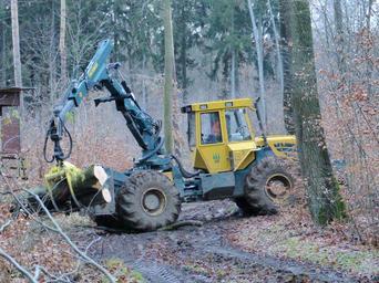 Keywords: forest tree forest workers firs trees nature vehicle landscape flower in the free log