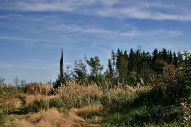 Keywords: forest trees grass sky clouds nature landscape grove of trees conifer