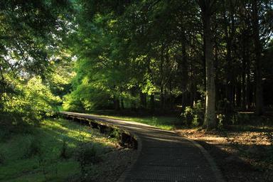 Keywords: forest walkway park nature outdoor pathway footpath foliage
