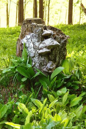 Keywords: forest woods lilies of the valley woodland stump burls trees sunny day summer face ghost