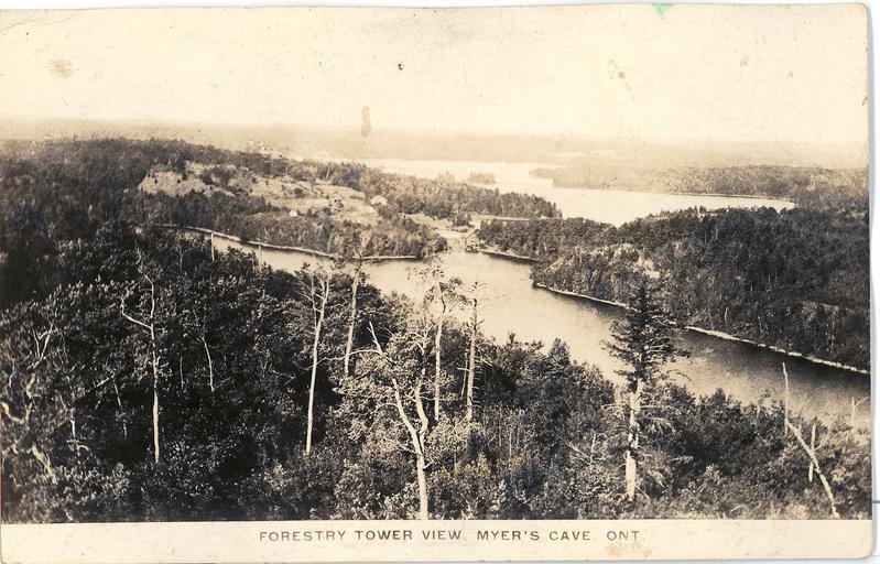 | Keywords: forestry tower forestrytower ranger tower rangertower myer's cave myerscave ontario canada north frontenac northfrontenac outdoor photo border serene This is a view, looking north-west from the forestry tower at Myer's Cave, Ontario, Canada. c1940 This is a view, looking north-west from the forestry tower at Myer's Cave, Ontario, Canada. c1940 |