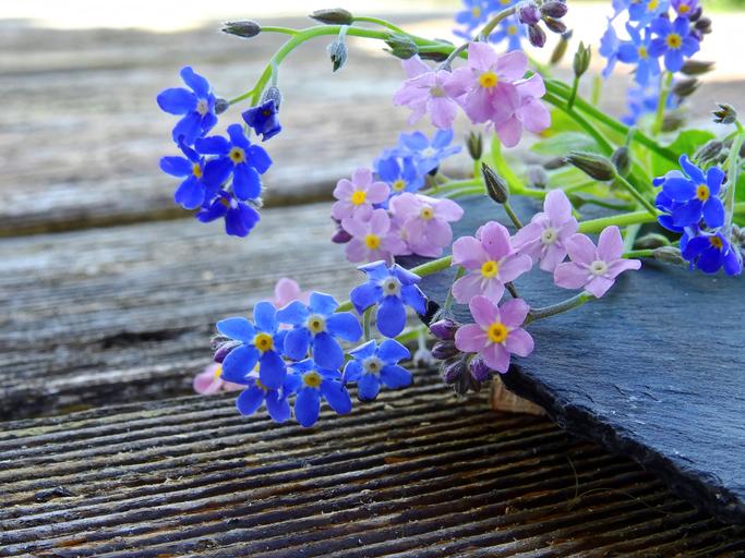 Keywords: forget me not flowers blue pink pointed flower blossom bloom flora background
