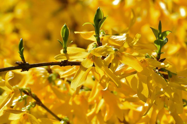 Keywords: forsythia flowers yellow bush beautiful spring close flower plant yellow flowers macro bright