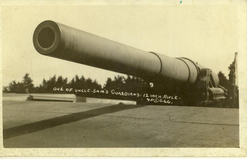Keywords: world war one worldwarone wwi fort greble fortgreble vehicle monochrome aircraft text Local Accession Number: PC 190 Description: Postcard photograph of a 12 in. rifle at Fort Greble during World War I. Inscription reads: "One of Uncle-Sams Guardians..." Photographer: Unknown Source: Donated by Jean Brannum Nichols Size: 3x5 Medium: Print, Black and White Date: c. 1917- 1918 Local Accession Number: PC 190 Description: Postcard photograph of a 12 in. rifle at Fort Greble during World War I. Inscription reads: "One of Uncle-Sams Guardians..." Photographer: Unknown Source: Donated by Jean Brannum Nichols Size: 3x5 Medium: Print, Black and White Date: c. 1917- 1918 |