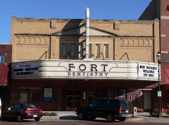 | Keywords: Fort Theater 3.jpg Fort Theater building at 2205 Central Ave Kearney Nebraska The building was designed by architects A B Lake and Edward J Sessinghaus and was built in 1914 The architectural style is classified as Classical Revival or Moderne The building is listed on the National Register of Historic Places It currently houses a dental practice Own Ammodramus 2009-11-03 Pictures by Ammodramus Taken with Panasonic Lumix DMC-FZ20 Fort Theater | ||||