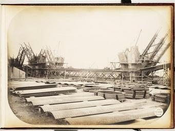 Keywords: Forth Bridge - Detail of the top member.jpg Photograph of a detail of the top member Detail of the whole length between verticals including junctions It would be interesting to know the number of visitors who have passed through the works and being brought face to face with the subject of this picture failed to recognise in it one of the connecting links at the apex of each cantilever These members being built at the angle they were finally destined to assume as well as upside down it is not surprising that they proved somewhat bewildering to the uninitiated By reference to No 1 the position of this member is easily seen - on the tops of vertical columns of Fife Pier These members were bulit in pairs and invariably erected in the yard prior to permanent fixing They have a depth of 12 feet The foreground of the picture presents a wilderness of steel plates and diaphragms stacked and ready for use Transcription from Philip Phillips 'The Forth Railway Bridge' Edinburgh 1890 Size cm 43 58 exhibition history Institution National Library of Scotland photograph object history PD-old-70-1923 Creator Philip Phillips RB l 229 74570330 Forth Bridge - Detail of the top member Uploaded with GWToolset Forth Bridge - Detail of the top member http //deriv nls uk/56YK98Q/7443/74438664 2 jpg Construction of the Forth Bridge Images uploaded as part of NLS-WMUK collaboration |