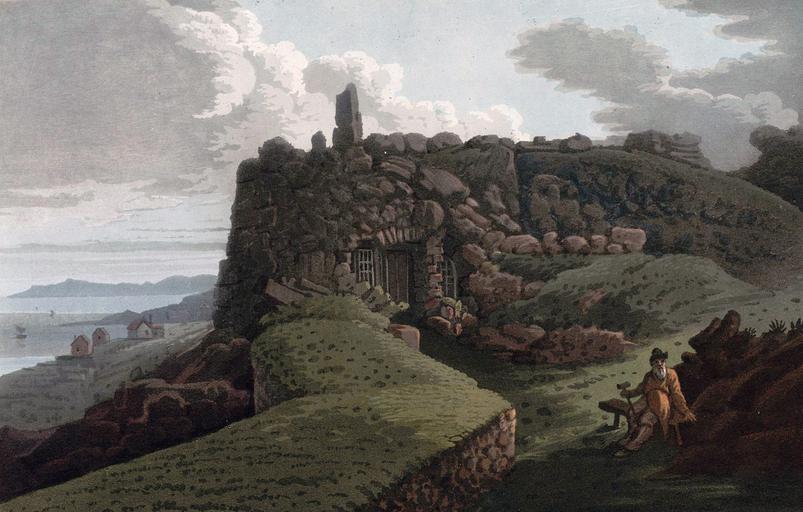 | Keywords: Fortifications at Larkoul (JW Edy plate 65).jpg Artwork Creator John William Edy en Fortifications at Larkoul No LXV FORTIFICATIONS AT LARKOUL From the present remains of these fortifications it appears that they were originally of no great extent but very strong and well adapted for defence and for the protection of the neighbouring inhabitants in case of need They are situated on the top of the continental rocks at the summit of a precipice having within range of their guns the whole of the harbour with its east and west entrances The interior is a quadrangle of which the area is about 400 square yards it is encompassed by a wall composed of large stones 20 feet thick well cemented with mortar appear ing on the three sides next the country to have been 20 feet high ; on the outside there is a broad moat or ditch at present nearly filled with the fragments of the dilapidated walls A strong embankment of stones and earth cannon proof rises on the inside to nearly the height of the ramparts It has only one entrance which is toward the village as may in its mutilated state be seen like a gap through the wall on the right of the picture The angular wall on the foreground extends entirely along the verge of the precipice exactly opposite the west entrance Part of the harbour and its east entrance are seen at the low point of the rock over the three houses beyond which is the Fiord and the large Isthmus near Mos from the point of which the ferry boat sails to the west of Norway as already mentioned I was surprised to find a place of such infinite importance in so neglected a state choaked up with rubbish and the well filled with stones There is no other harbour so safe on the Fiord when vessels have once entered and a little repair of the works would render it untenable for an enemy In one of the angles directly in front is seen the entrance to a small vaulted chamber with a remarkable perpendicular stone on its top of which a poor aged misanthrope has taken possession He is a cobbler by trade and has bestowed great pains and labour on his retreat to convert it into what he calls a dwelling which he has inhabited many years in solitary and miserable seclusion On each side of a door of rough boards an old broken glass casement with rags stuffed between the leads forms the window; in a corner is a heap of the dead leaves of the fir which is used as a bed over which an old piece of well-worn sailcloth forms the coverlid; two large stones which fell from the roof have supplied chair and table ; a small hearth with a hole above it for a chimney two crutches a hatchet and a clasp knife make up the the rest of the accommodations The wretched tenant carries his tattered wardrobe perpetually on his back with belts exactly according to the ancient Norwegian costume; his beard is perfectly white and long his eyes are good and his frame shews the remains of athletic strength ; he looks very like old Drakenberg who lived to the great age of 146 lxva 1 Drakenberg was totally blind in the latter part of his life and his age being doubted he angrily travelled on foot begging his way from Copenhagen to Drontheim and back again to obtain the register of his nativity and prove the fact On his return being vexed at the unbelief of his townsmen he indignantly threw down the paper with these emphatical words What do you think of me now 1 lxva The portrait of this patriarch is in our possession and he may be classed as the third old Man in Europe; viz Jenkins 169; Parr 152; Drakenberg 146 Collapse bottom http //urn nb no/URN NBN no-nb_digibok_2011072910001 Boydell's picturesque scenery of Norway London 1820 Plate no 65 p 333 in scanned copy no-nb_digibok_2011072910001 PD-Art-100 John William Edy Boydell's picturesque scenery of Norway Fortifications in Norway Larkollen Chimneys in Norway |