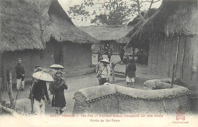 Keywords: Fortin du De-Tham.jpg en Old postcard c 1900-1910 showing the earthen fort built by Dé-Thám the ultimate leader of the vietnamese national resistance movement againt French colonization in the higher Yên Thé region Tonkin fr Carte postale ancienne des années 1900 représentant le fortin en terre du Dé-Thám chef ultime du mouvement de résistance national vietnamien contre la colonisation française dans le haut Yên Thé au Tonkin Document personnel/Own Document Pierre Dieulefils Années 1900 / 1900s Hoang Hoa Tham Pierre Dieulefils PD-old |