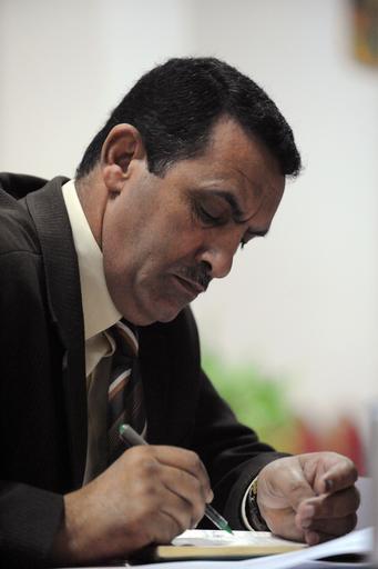 Keywords: Forward Operating Base Warrior Hosts Sons of Iraq Transition Meeting DVIDS261400.jpg en Rakan Saeed Ali Radwa Al-Jubori deputy governer Kirkuk Iraq takes notes as Iraqi and U S leaders talk during the Sons of Iraq Transition Meeting at Forward Operating Base Warrior in Kirkuk Iraq March 18 Leaders from the U S Army Iraqi army and Iraqi police met to discuss how to help those currently serving in the Sons of Iraq transition to other security forces or positions were they can continue to serve their country 2010-03-18 Petty Officer 1st Class matthew leistikow https //www dvidshub net/image/261400 100318-N-+++++-082 2010-03-19 19 38 KIRKUK IQ PD-USGov-Military-Navy Forward Operating Base Warrior Sons of Iraq Images from DoD uploaded by Fæ |