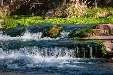 Keywords: arizona coconino national forest coconinonationalforest forest service forestservice fossil creek fossilcreek fossil springs fossilsprings fossil springs wilderness fossilspringswilderness national forest nationalforest red rock ranger district redrockrangerdistrict tonto national forest tontonationalforest backpacking canyon desert forest hiking outdoors spring springtime trail wilderness strawberry united states unitedstates Fossil Springs begin approximately three quarters of a mile above the old Fossil Creek Dam. A series of springs gush 20,000 gallons a minute year-round at the bottom of a 1,600 foot deep canyon, creating a lush riparian oasis rich with life, and feeding Fossil Creek Wild and Scenic River. Over the years these calcium laden waters have laid down huge deposits of a type of limestone called travertine, creating deep pools for miles along the creek. The Wilderness and surrounding area are on the Tonto and Coconino National Forests, and are managed by the Coconino National Forest. During the spring-summer season, camping is prohibited in Fossil Springs Wilderness and the surrounding area, and a reserved parking permit is required to park at the trailheads that access the Wilderness. See Fossil Springs Wilderness and Fossil Creek on the USFS Coconino National Forest website for maps, regulations, permit reservations, and other details. Photo by Deborah Lee Soltesz. Source: USFS Coconino National Forest. Fossil Springs begin approximately three quarters of a mile above the old Fossil Creek Dam. A series of springs gush 20,000 gallons a minute year-round at the bottom of a 1,600 foot deep canyon, creating a lush riparian oasis rich with life, and feeding Fossil Creek Wild and Scenic River. Over the years these calcium laden waters have laid down huge deposits of a type of limestone called travertine, creating deep pools for miles along the creek. The Wilderness and surrounding area are on the Tonto and Coconino National Forests, and are managed by the Coconino National Forest. During the spring-summer season, camping is prohibited in Fossil Springs Wilderness and the surrounding area, and a reserved parking permit is required to park at the trailheads that access the Wilderness. See Fossil Springs Wilderness and Fossil Creek on the USFS Coconino National Forest website for maps, regulations, permit reservations, and other details. Photo by Deborah Lee Soltesz. Source: USFS Coconino National Forest.