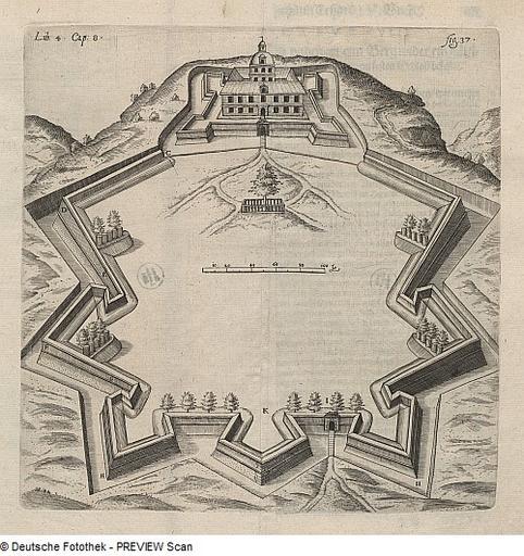 | Keywords: Fotothek df tg 0000943 Architektur ^ Festung ^ Grundriss ^ Kommandement.jpg Scan Deutsche Fotothek df_tg_0000943 color 2007 MIK-Center Berlin GmbH 88960943 Lib 4 Cap 8 Figur 37 Frankfurt Main Wie man sich unden an eim Berg wider ein stättiges Commandement unter einem festen Schloß befestigen soll Papier Kupferstich 23 2 x 22 9 cm Architektur Festung Grundriss Kommandement ppn264654064 1604 Druck Deutsche Fotothek gefördert von der Deutschen Forschungsgemeinschaft Projekt Technikgeschichte 16 /17 Jh Verwalter Dresden Sächsische Landesbibliothek - Staats- und Universitätsbibliothek Dresden Milit B 56 Herstellung Herstellung Richter Wolfgang Verleger aus Errard Jean Bry Katharina de Bry Johann Israel de Bry Johann Theodor de Buch Fortificatio Das ist Künstliche vnd wolgegründte Demonstration vnd Erweisung wie vnd welcher Gestalt gute Festungen anzuordnen vnd wider den Feind so sie mit Heers krafft nach allem Vortheil möchte angreiffen zu verwahren vnd zu versichern Auff allerley Orter und Gelegenheiten wie die mögen zu befestigen vorfallen gerichtet CAPUT VIII Wie man sich unden an eim Berg wider ein stättiges Commandement unter einem festen Schloß befestigen soll SLUB Milit B 56 Fotothek-Broken image Fotothek-License PD-old-100 Fortificatio de Bry Old Manuscripts from the Deutsche Fotothek Castrametation |