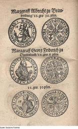 | Keywords: Fotothek df tg 0002011 Geldwesen ^ Münzwesen ^ Münze ^ Taler.jpg Scan Deutsche Fotothek df_tg_0002011 color 2007 MIK-Center Berlin GmbH 88962011 9v IX v Dresden Taler des Markgrafens Albrecht von Brandenburg; Taler des Markgrafens Georg Friedrich von Onoldsbach Papier Holzschnitt 16 1 x 9 1 cm Geldwesen Münzwesen Münze Taler ppn265983878 1571 Druck Deutsche Fotothek gefördert von der Deutschen Forschungsgemeinschaft Projekt Technikgeschichte 16 /17 Jh Verwalter Dresden Sächsische Landesbibliothek - Staats- und Universitätsbibliothek Dresden Hist Sax M 192 Herstellung Stöckel Verleger Darstellung Albrecht Brandenburg Markgraf Darstellung Georg Friedrich Onoldsbach Markgraf aus August Sachsen Kurfürst Buch Des Churfürsten zu Sachsen und Burggraffen zu Magdeburg etc Ausschreiben Gebot unnd Vorbot die Müntz anlangende nach inhalt des H Reichs Müntzordnung und derowegen auffgerichteter Abschiede Anno M D LXXI den 22 Decembris Nachfolgende Taler seind mehr nicht werdt/ dann wie uber ein jedern vorzeichent SLUB Hist Sax M 192 Fotothek-License PD-old-100 Scans Old Manuscripts from the Deutsche Fotothek Coins |