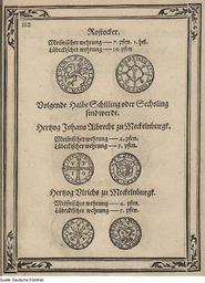 | Keywords: Fotothek df tg 0002394 Geldwesen ^ Münzwesen ^ Münze ^ Schilling ^ Sechsling.jpg  Scan Deutsche Fotothek df_tg_0002394 color 2007 MIK-Center Berlin GmbH 88962394 112 Leipzig Schilling Sechsling von Rostock; Halber Schilling Sechsling von Herzog Johann Albrecht von Mecklenburg; Halber Schilling Sechsling von Herzog Ulrich von Mecklenburg Papier Holzschnitt 17 7 x 13 cm Geldwesen Münzwesen Münze Schilling Sechsling ppn266173098 1573 Druck Deutsche Fotothek gefördert von der Deutschen Forschungsgemeinschaft Projekt Technikgeschichte 16 /17 Jh Verwalter Dresden Sächsische Landesbibliothek - Staats- und Universitätsbibliothek Dresden Hist Sax M 191 misc 4 Herstellung Rhambau Johann Drucker Herstellung Stürmer Verleger aus Stürmer Wolf Buch Vortzeichnus und Gepräge der Groben und Kleinen Müntzsorten Welcher sich die Churfürsten Fürsten und Stende in dem Obern Sächssischen Krais vermöge des Heiligen Reichs Müntzordnung und darauff ervolgten Krais und Probationtägen vorglichen Darinne anfangs die Guten Taler so hinfüro geng und gebe sein sollen Und dann volgents auch die Groben und Kleinen geringen Valuirten Sorten zubefinden so auff den Bruch in die vorordente Wechssel geantwortet werden sollen Nachvolgende Taler/ so des Heiligen Reichs Müntzordnung ungemes/ und in der Prob nicht bestanden/ sind werdt wie uber ein jedern verzeichnet SLUB Hist Sax M 191 misc 4 Fotothek-License PD-old-100 Coins of the Holy Roman Empire Vortzeichnus und Gepräge der Großen und Kleinen Müntzsorten 1573 |