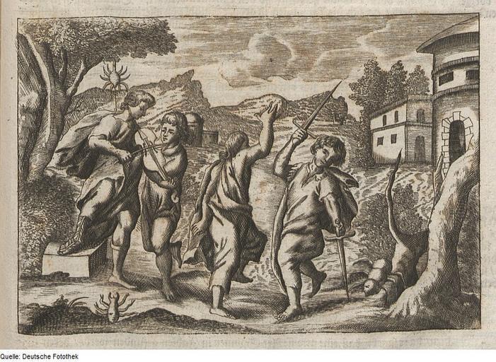 | Keywords: Fotothek df tg 0008363 Akustik ^ Musik ^ Tarantel ^ Spinne ^ Saiteninstrument ^ Ordensliteratur.jpg Scan Deutsche Fotothek df_tg_0008363 color 2008 MIK-Center Berlin GmbH 88968363 145 Ellwangen Heilung eines von einer Tarantel gebissenen Menschen durch Musik und Tanz Papier Kupferstich 10 7 x 15 2 cm Akustik Musik Tarantel Spinne Saiteninstrument Ordensliteratur ppn278980597 1684 Druck Deutsche Fotothek gefördert von der Deutschen Forschungsgemeinschaft Projekt Technikgeschichte 16 /17 Jh Verwalter Dresden Sächsische Landesbibliothek - Staats- und Universitätsbibliothek Dresden MB 4 81 Herstellung Schultes Friedrich Drucker Herstellung Heil Verleger aus Kircher Athanasius Nislen Tobias Buch Neue Hall- und Thon-Kunst Oder Mechanische Gehaim-Verbindung der Kunst und Natur durch Stimme und Hall-Wissenschafft gestifftet Laut- oder Thon-Kunst Anderes Buch Neue Thon- und Stimm-Wissenschafft / in welcher die verborgene und geheime Ursachen und Eigenschafften durch Zahlen und Rechnung vorgestellet werden Andere Abtheilung Heylsame Stimm- und Thon-Kunst Oder Wie man durch die Music die verwirrte Gemüther und mancherley Kranckheiten heylen könne Caput IV Welcher Gestalten die von den Tarantulen gebissen und verletzte durch die Music wunderbarer Weise curiret werden SLUB MB 4 81 Fotothek-License PD-old-100 Spiders in art Old Manuscripts from the Deutsche Fotothek |