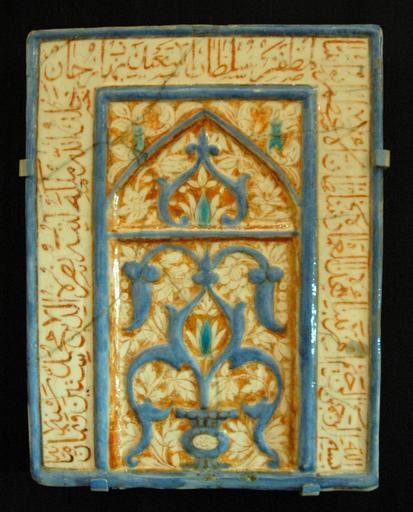 | Keywords: Foundation plaque MET 30-85-26.jpg Foundation plaque bearing the signature of Nusrat al-Din Muhammad about a building erected by Abu Sa'id of the Timurid Dynasty Molded earthenware lustre and cobalt decoration 1455 Iran Metropolitan Museum of Art MET 30 85 26 Plaque de fondation portant la signature de Nusrat al-Din Muhammad La plaque décrit l'érection d'un monument non identifié par le Timouride Abu Sa'id Pâte siliceuse moulée décor de lustre et rehauts de cobalt 1455 Iran Metropolitan Museum of Art MET 30 85 26 own Jastrow 2006 Tiles in Iran Arabic calligraphy in applied art Lustreware Iranian sculptures in the Metropolitan Museum of Art 1455 Timurid art |