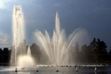 Keywords: fountain cascade water streams enormous great rest garden park blue heat coolness summer view