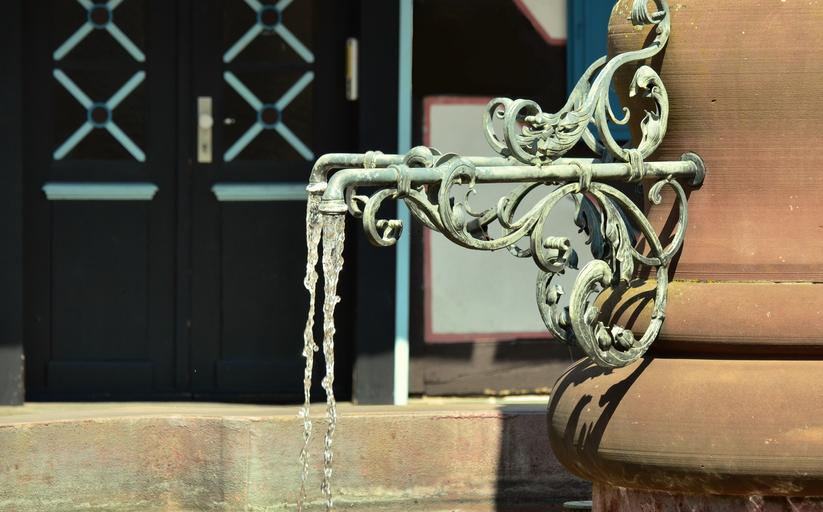Keywords: fountain faucet water fountain iron wrought iron ornament old water running water jet water dispenser flow fließedes water