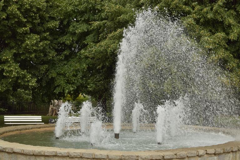 Keywords: fountain park water water feature flowers walk green area