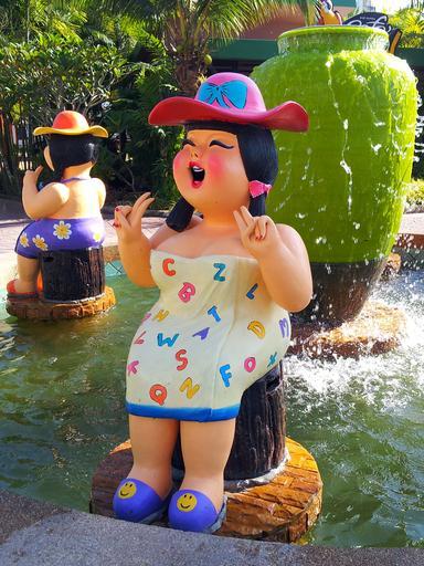 Keywords: fountain sculpture baby doll girl park summer thai girls joy