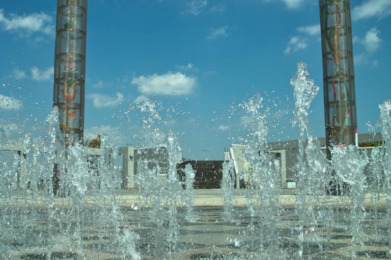 Keywords: fountain stadium pillar stop water