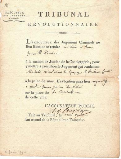 Keywords: Fouquier.jpg Acte de condamnation à mort signé par Fouquier Tinville accusateur public au comité de salut public pendant la révolution française PD-art Antoine Quentin Fouquier-Tinville Autographs from the French Revolution Artworks missing infobox template |