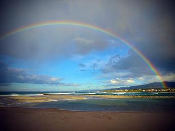 Keywords: foz lugo spain rainbow beach sand sun spring clouds barreiros