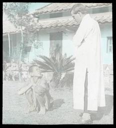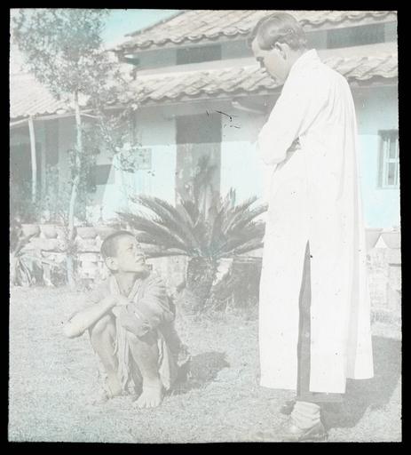 Keywords: Fr. Frederick Dietz, MM, talking to a child at a clinic, China, ca. 1918-1938 (MFB-LS0277).jpg en <br> Fr Frederick Dietz MM talking to a child at a clinic China ca 1918-1938 Black and white lantern slide of Fr Frederick Dietz MM talking to a child at a clinic Fr Deitz stands outdoors with his arms folded across his chest He wears a white cassock The child sits with his knees pulled up to his chest on the grass in front of a building with a terra cotta roof With his arms folded he looks up at Fr Dietz Photographer Unknown Subject keyword missionary work; clergy; general views Filename MFB-LS0277 Coverage date circa 1918/1938 Subject unesco missionary work; clergy Part of collection International Mission Photography Archive ca 1860-ca 1960 Type images Part of subcollection Photographs of the Catholic Foreign Mission Society of America Maryknoll New York 1912-1945 Part of repository Maryknoll Mission Archives Repository name Maryknoll Mission Archives Archival file impa_Volume33/MFB-LS0277 tiff Repository address Maryknoll Mission Archives PO Box 305 Maryknoll N Y 10545-0305 Geographic subject country China Geographic subject continent Asia Rights http //www maryknollsociety org/index php/articles/2-articles/593 Repository email archives maryknoll org Date created circa 1918/1938 Publisher of the digital version University of Southern California Libraries Format aat lantern slides Legacy record ID impa-m61032 Access conditions http //www maryknollsociety org/index php/articles/2-articles/593 File MFB/LanternSlides/LS0277 circa 1918 /1938 author http //digitallibrary usc edu/cdm/ref/collection/p15799coll123/id/11561 PD-old-70-1923 Magic lantern images Images from USC Digital Library uploaded by Fæ International Mission Photography Archive ca 1860-ca 1960 Clergy |