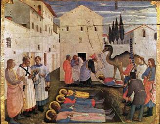 | Keywords: Fra Angelico - Sepulchring of Saint Cosmas and Saint Damian - WGA00518.jpg Artwork Creator Fra Angelico other date between 1438 1440 Tempera wood size cm 37 45 Institution Museo di San Marco Florence object history credit line accession number WGA link 518 http //www wga hu/art/a/angelico/07/marco_p8 jpg http //www wga hu/html/a/angelico/07/marco_p8 html PD-old-100 painting religious Italian 1401-1450 Pala di San Marco Angelico 1438 Museo nazionale di San Marco 15th-century paintings from Italy WGA form painting WGA type religious WGA School Italian WGA time period 1401-1450 Tempera on panel People with camels in art 1438 paintings 1439 paintings 1440 paintings Paintings of Saints Cosmas and Damian |