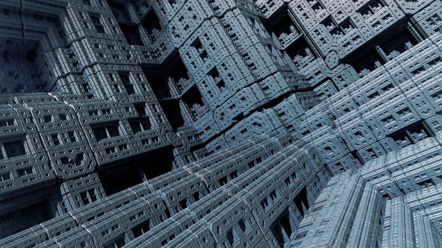 Keywords: fractals geometry graphic background abstract grey blue mathematics fractal structures architecture utopia sience fiction
