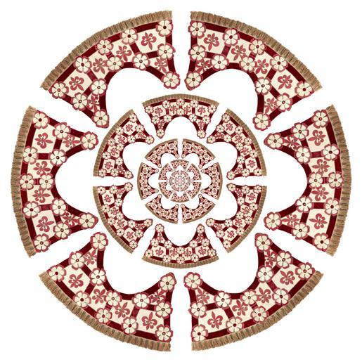 Keywords: Framdel till tornerschabrak i Maria Eleonoras färger rött och vitt tillverkat för bröllopstorneringen 1620 - Livrustkammaren - 91558.tif LSH artwork Baltzar Dinet Hovskräddare Anders pärlstickare pärlstickare sv På en botten av vit taft är applicerade ca 65 mm breda röda sammetsremsor tagna på diagonalen i ett rutsystem Där remsorna korsar varandra är applicerad en dubbel blomma av sidenatdlas den undre röd och ca 180 mm i diameter den övre vit och ca 140 mm På varje ruta en stiliserad lilja ca 90 mm hög och 160 mm bred En rosett av ibland guldgalon och ibland av silvergalon i blommornas mitt saknas på fyra blommor och två liljor Applikationera kantade med 3 mm breda silverflätor <br/>Längs nedre kanten en 100 mm bredfrans av silver och brunt silke i ca 25 mm breda partier <br/>Mellanfoder och foder av svart linne i tuskaft En ca 270 mm bred styvnad längs nedre kanten På fodrets övre vänstra hörn ett ca 500 mm långt beige bomullsband i övre högra hörnet en ca 250 mm lång läderrem <br/>1654 finns dessa tolv tornertäcken i Livrustkammaren 1655 även halskapporna och 1671 riddarskörten Ett täcke och riddarskörten kasserades 1823 1850 finns de ej upptagna 1867 upptages två med anteckning från Gripsholm ett är upptaget tillsammans med en sadel 869 övriga återlämnas från Husgerådskammarens förråd på Gripsholm enl skrivelse från chefen för K Hovmarskalksämbetet 7 2 1912 original caption Framdel till tornerschabrak i Maria Eleonoras färger rött och vitt tillverkat för bröllopstorneringen 1620 <br/> Nyckelord Rött Blomdekor Blommor Gustav II Adolf och Maria Eleonoras bröllop 1620 taffeta Färg vit röd material sidentaft size mm 450 mitt size mm 850 kant size mm 1260 upptill size mm 1480 nedtill LRK Maria Eleonora av Sverige drottning 1599- Königsberg Trofast - hov och tass i kunglig tjänst 2010-2011 Livrustkammaren Trogna vänner - Kungliga hästar och hundar 2011-2012 Museiverket/Finlands nationalmuseum Maria Eleonora - Hjärtats drottning 2013 Livrustkammaren Maria Eleonora - Hjärtats drottning arb namn 2014-2015 Nyköpingshus place of origin original filename lm_dig8721 42653 inventory number LRK 6114 91558 CC-BY-SA Erik Lernestål <gallery caption Different images of same object > File Framdel till tornerschabrak i Maria Eleonoras färger rött och vitt tillverkat för bröllopstorneringen 1620 - Livrustkammaren - 91559 tif File Framdel till tornerschabrak i Maria Eleonoras färger rött och vitt tillverkat för bröllopstorneringen 1620 - Livrustkammaren - 91557 tif </gallery> Decor Floral designs Red Wedding of Gustav II Adolf and Maria Eleanor of Sweden Horse equipment Erik Lernestål Media contributed by LSH dim-with multiple size templates Media contributed by LSH unmatched creator Media contributed by LSH 2014-11 |