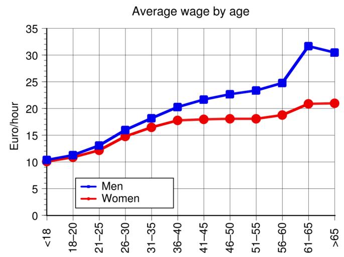 Keywords: France average hourly wage by age and sex.svg en Average hourly wage in France by age and sex for 2013 Data source http //www insee fr/fr/themes/detail asp reg_id 0 ref_id ir-irsocdads2013 T101 2016-05-28 own Delphi234 other versions Generated with Wikimedia SVG Chart SVG Chart/box cc-zero Income distribution in France |