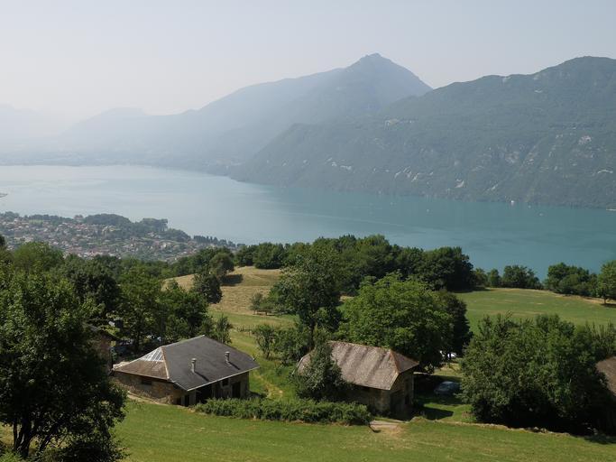 Keywords: france landscape scenic mountains summer spring fog river water trees fields buildings nature outside forest