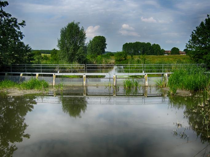 Keywords: france landscape scenic summer spring trees fields stream canal water reflections hdr sky clouds nature outside footbridge countryside