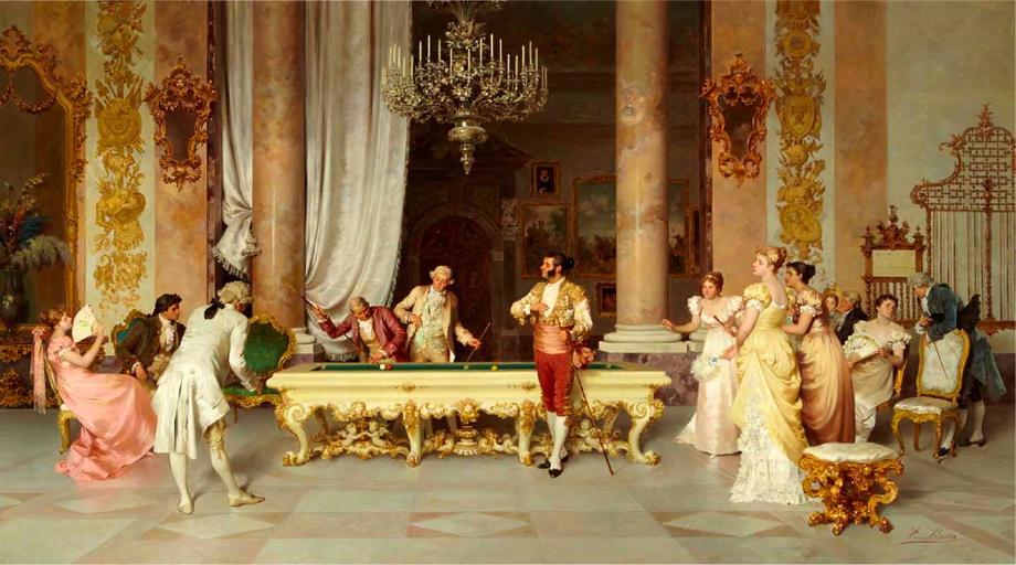 | Keywords: Francesco Beda A game of billiards.jpg Francesco Beda 1840-1900 other date by 1900 oil on canvas cm 81 3 143 5 object history credit line F Beda signature lower right accession number http //www bonhams com Bonhams PD-old-100 Images from Bonhams Francesco Beda Uploaded with UploadWizard Games in art Regency revival genre paintings Billiard paintings |