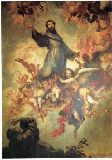 | Keywords: Francisco de Herrera (II) - Stigmatisation of St Francis - WGA11379.jpg Artwork Creator Francisco de Herrera II La Apoteosis de San Francisco es un óleo sobre lienzo pintado en 1656 por Francisco de Herrera el Mozo y conservado en la capilla de San Francisco de la catedral de Sevilla 1656 Oil on canvas size cm 570 363 Institution Catedral de Santa María de la Sede de Sevilla Capilla de San Francisco de la catedral de Sevilla España object history credit line accession number WGA link 11379 http //www wga hu/art/h/herrera/franci_y/sfrancis jpg http //www wga hu/html/h/herrera/franci_y/sfrancis html PD-old-100 painting religious Spanish 1651-1700 Retablo de la capilla de San Francisco Catedral de Sevilla Francisco de Herrera el Mozo 1656 paintings Paintings of Francis of Assisi 1650s paintings from Spain 1650s paintings in Spain Angels carrying humans 17th-century paintings of angels with humans 17th-century religious paintings in Spain WGA form painting WGA type religious WGA School Spanish WGA time period 1651-1700 |