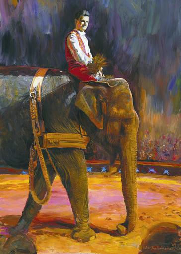 Keywords: switzerland rapperswil circus-knie circusknie circus family elephant performance oilpainting artist-painter artistpainter hubertine-heijermans hubertineheijermans piste public circus-act circusact suisse 1999 on.canvas oncanvas national.circus.knie nationalcircusknie franco.knie francoknie der.schweiz derschweiz canton.san.gallen cantonsangallen headquarters.rapperswil headquartersrapperswil Rajah imitates the work in the forest. The elephant carries a saddle with a leather loop to pull heavy tree trunks, a perfect performance and an imitation of how work in the Indian forest was done. But today it has become doubtful that elephants are allowed to perform, as they became rare and are now protected. It is because they become very old that the law creates a problem for Franco Knie. And Rajah deserves to be able to go on and have audiences applaud. By the way, the equipment, saddle and loops are authentic. www.flickr.com/photos/tine-heijermans/27998143504/in/date... En français: Rajah imite le travail exécuté dans la forêt Indienne. Une selle particulière avec des boucles solides sert à tirer des troncs d'arbres et l'équipement est en effet authentique. Pourtant l'exploit d'éléphants est devenu aujourd'hui un tabou à cause de la protec-tion d'animaux d'origine sauvage. Mais des éléphants peuvent atteindre un grand age et ceci est la cause, que cette loi implique des éléphants depuis longtemps domestiqués. Rajah imitates the work in the forest. The elephant carries a saddle with a leather loop to pull heavy tree trunks, a perfect performance and an imitation of how work in the Indian forest was done. But today it has become doubtful that elephants are allowed to perform, as they became rare and are now protected. It is because they become very old that the law creates a problem for Franco Knie. And Rajah deserves to be able to go on and have audiences applaud. By the way, the equipment, saddle and loops are authentic. www.flickr.com/photos/tine-heijermans/27998143504/in/date... En français: Rajah imite le travail exécuté dans la forêt Indienne. Une selle particulière avec des boucles solides sert à tirer des troncs d'arbres et l'équipement est en effet authentique. Pourtant l'exploit d'éléphants est devenu aujourd'hui un tabou à cause de la protec-tion d'animaux d'origine sauvage. Mais des éléphants peuvent atteindre un grand age et ceci est la cause, que cette loi implique des éléphants depuis longtemps domestiqués. |