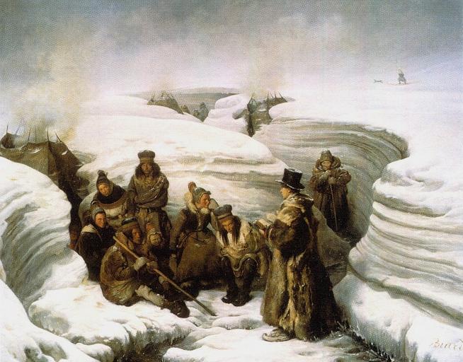 | Keywords: François-Auguste Biard - Le Pasteur Læstadius instruisant les Lapons.jpg Artwork Creator François-Auguste Biard no Læstadius preker for samene fr Le Pasteur Læstadius instruisant les Lapons 1840 oil canvas cm 131 163 Nordnorsk Kunstmuseum Tromsø object history credit line accession number http //www nnkm no/crispin htm Nordnorsk Kunstmuseum PD-old-100 Le Pasteur Læstadius instruisant les Lapons by François-Auguste Biard François-Auguste Biard 1840 paintings Lapland Paintings in the Nordnorsk Kunstmuseum Christian mission in art Lars Levi Læstadius Sami clothing La Recherche Expedition 1838-1840 19th-century oil on canvas paintings Fur coats in art Paintings of polar regions Paintings of people with winter landscapes Fur fashion in 1840 |