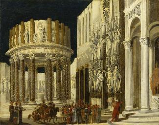 | Keywords: François de Nomé - St Paul Preaching to the Athenians - Walters 37328.jpg These scenes from earliest Christian history are set amid fantasy architecture mysteriously lit under dark skies The small scale of the figures makes the buildings seem enormous De Nomé has imagined ancient streetscapes of Athens and Jerusalem as lined with sculpture and rich architectural ornament In the scene of St Paul preaching a circular pagan temple stands next to a lavish entrance to a synagogue with a statue of Moses at the left that appears to be adapted from the famous Well of Moses of 1395-1404 by Claus Sluter in Dijon De Nomé's mixture of classical and late medieval Gothic elements from his homeland adds to the uniqueness and eccentricity of the compositions The small size of the copper plates and the complexity of the compositions call attention to the artist's virtuosity and skill Zeri Italian paintings in the Walters Art Gallery 342 466 ca 1620 1624 Baroque oil on copper Painted surface cm 18 9 24 accession number 37 328 37844 Don Marcello Massarenti Collection Rome date and mode of acquisition unknown 1897 catalogue no 864 as Flemish about 1550 Henry Walters city Baltimore Walters Art Museum Henry Walters Acquired by Henry Walters with the Massarenti Collection 1902 Transcription Inscribed on Saint Paul near the lower right corner ACTI CAP XVII; Translation Acts Chapter 17; Inscription illegible inscription in Greek on the internal architrave of the circular building on the left An Exhibition of the Treasures of The Walters Art Gallery The Walters Art Museum Baltimore; Pace Wildenstein Gallery New York; Smith College Museum of Art Northampton 1967 The Fantastic Visions of Monsù Desiderio The John and Mable Ringling Museum of Art Sarasota 1950 Scenes and Spectacles The Theatre-World of the Baroque Paul Klapper Library Flushing 1962 World of Wonder The Walters Art Gallery Baltimore 1971-1972 François de Nomé Theatre of Light and Destruction The Menil Collection Houston 1991-1992 place of origin Naples Italy Walters Art Museum license 2D Baroque paintings in the Walters Art Museum François de Nomé French paintings in the Walters Art Museum Media contributed by the Walters Art Museum needs category review 1620s paintings from France |