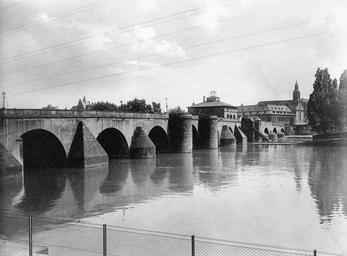 | Keywords: Frankfurt Am Main-Fay-BADAFAMNDN-Heft 26-Nr 308-1911-Bruecke von Frankfurt gesehen.jpg Follows de Heft 26 Tafel 308 / Titel auf der Tafel Brücke von Frankfurt gesehen / Originalbeschreibung Zu den Denkmälern der alten Reichsstadt die durch Geschichte und Sage verklärt bestimmt sind für ewige Zeiten im Gedächtnis der Menschen fortzuleben gehört die žrote Mainbrücke Aus Mainsandstein errichtet auf massiven Pfeilern mit kräftigen Vorder- und Hinterköpfen die zwischen dem 5 und 7 Bogen eine architektonisch recht wirksame Ausbuchtung erfahren haben überspannt sie in halbkreisförmigen Bogen aus Quaderschichten den ruhig dahinströmenden Flusslauf Ueber das Alter sind wir nur schlecht unterrichtet Die erste urkundliche Erwähnung der alten Brücke geschieht im Jahre 1222 doch ist mit Sicherheit anzunehmen dass die Erbauung einer Holzbrücke in weit frühere Zeit hinaufreicht Mau kann sich kaum vorstellen dass die ansehnliche Niederlassung um den žSaalhoeff das alte Palatium Ludwigs des Frommen nicht schon sehr bald mit den ausgedehnten Wohnsitzen der Ministerialen in der Sachsenhäuser Gemarkung in direkter Verbindung gestanden hat Allein die Unsolidität des Materials und die rohe Naturgewalt worunter die Menschheit des Mittelalters in ganz anderer Weise zu leiden hatte als wir in unseren Tagen zwangen zu dem kostspieligen Ersatzbau in Stein Doch brachten Mangel an Mittel wie auch die Schwierigkeit geeignete Arbeitskräfte zu finden das monumentale Werk nur langsam voran Man fundierte die Pfeiler unmittelbar mit Hülfe von eichenen Schwellenrosten auf die Flusssohle die nicht etwa wie irrtümlich angenommen wird aus Tonschiefer sondern aus blauem Cyrenenmergel besteht der bei der verstärkten Strömung zwischen den Pfeilern den wachsenden Auskalkungen der Sohle nicht genügenden Widerstand entgegensetzt So wird denn im Laufe des 13 und 14 Jahrhunderts wiederholt von ausgeführten Steinarbeiten an Pfeilern und Schwibbogen berichtet Auch für König Heinrich den Sohn Friedrichs II bildete die Erhaltung der Brücke im Interesse des Reiches einen Gegenstand schwerer Sorge Der aus politischen Gründen vor allem den Städten wohlgesinnte junge Fürst verlieh im Jahre 1235 ein Privilegium zur halben Nutzung der Münze und zum Bezug des zur Reparatur der Brücke nötigen Holzes aus dem Reichswalde Auf das höchste bedroht muss aber die Erhaltung der Brücke um das Jahr 1300 gewesen sein Anders hat es keinen Sinn dass fünfzehn italienische Bischöfe einen Ablass für jene Gläubigen gewähren die zum Bau der vom Hochwasser zerstörten Pfeiler beitrugen Die Brückenbahn bestand zu jener Zeit zum grössten Teil aus Holz und gab dem Bauwerk noch nicht durch die eigene Schwere der gewaltigen Schwibbogen eine Stabilität die allen Unbilden der Witterung bis zum heutigen Tage getrotzt und entgegen den gemachten Einwänden auch für absehbare Zukunft noch trotzen würde Immerhin mag die Brücke im Jahre 1405 wie die Abbildung von dem Schreiber eines Bedebuches zeigt das heutige Aussehen gehabt haben Wenn dennoch aus dem Jahre 1419 berichtet wird dass man an dem letzten Pfeiler gearbeitet habe damit mam fernerhin ždes kostlichen buwes mit holczwercken nit bedarff sondern balken druber leget und druff brückendele so handelt es sich hier um die Beseitigung eines Zustandes den man im Hinblick auf unruhige Zeiten belassen hatte um gegebenen Falles ohne weitere Schwierigkeiten die Verbindung der beiden Flussufer aufzuheben Einen gewissen Schutz gewährte immer noch der über zwei Oeffnungen belassene Brückenbelag aus Bohlen der erst Ende des 16 Jahrhunderts durch Bogen am Sandstein ersetzt wurde Und böse Zeiten zogen für das ehrwürdige Denkmal herauf Im Jahre 1427 sah sich der Rat der freien Reichsstadt genötigt aus Furcht vor den wilden Horden der Hussiten die Bogen der Brücke mit schweren Balken versperren zu lassen Den Einspruch des in seinen Fluss- und Hoheitsrechten sich beschränkt glaubenden Erzbischhofs von Mainz nahm man leicht Etwa 100 Jahre später aber während der Bewegung des Bauernaufstandes der auch in das Maintal hinüber gegriffen hatte pflanzte die ärmere Bevölkerung der Stadt die Fahne der Empörung auf der Brücke auf ohne dass es jedoch zu ernsthafteren Zusammenstössen gekommen war Schlimmer erging es dem Bauwerk im schmalkaldischen Kriege Als das Protestantenheer zur Belagerung der damals in kaiserlichem Besitz sich befindenden Reichsstadt schritt hatte man alle Vorkehrungen zum Schutze des unentbehrlichen Verkehrsweges getroffen Grosse Leinentücher waren auf der Brücke gespannt und die Mühle selbst mit grossen Wollsäcken verstopft um sie während der Zeit der Bedrängnisse in Gang zu halten Der Hauptanschlag zur Zerstörung der Brücke vermittels schweren Geschützes vereitelte der Abschluss des Passauer Vertrages und der damit verbundene Abzug eines Teiles der Belagerungstruppen Kaum weniger ernst war die Lage der Brücke im dreissigjährigen Kriege Auf der Fahrbahn selbst kam es zu heftigem Kampfe und es muss als ein Wunder angesehen werden dass bei dem Geschützfeuer von Ufer zu Ufer wobei 26 Häuser in Asche gelegt wurden die Brücke selbst kaum wesentlichen Schaden erlitt Allein an dem Kruzifix seien wie die Ueberlieferung will noch heute die Spuren von Schwedenkugeln sichtbar Im siebenjährigen Kriege wie im Befreiungskriege hat ein günstiger Stern über der Stadt gewaltet und grössere Verluste ferngehalten Im Sturmjahre 1848 sah die Brücke die letzten kriegerischen Ereignisse die aber Spuren irgendwelcher Art an dem Denkmal nicht hinterlassen haben <br>Wie in Kriegszeiten so stand auch in den Jahren des Friedens die alte Mainbrücke im Mittelpunkt des Interessens der Bewohner Ein gewaltiger Menschenstrom zog jahraus jahrein auf uralten Handelswegen über die Brücke die zur Lebensader des Rhein- und Main-Gaues geworden war Durch besondere Gesetze geschützt bedrohte man einen jeden der auf der Brücke Streit anfing mit dem Abhauen der rechte