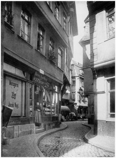 | Keywords: Frankfurt Am Main-Fay-BADAFAMNDN-Reprint-214-Hinter dem Laemmchen Eingang vom alten Markt.jpg Artwork Creator Carl Friedrich Fay 258 Hinter dem Lämmchen Behind the Lambkin entrance from the Alter Markt Old Market Diese alte und enge Gasse hat bereits in verschiedenen Heften des vorliegenden Werkes bildlich und textlich Aufnahme gefunden Das vorliegende Blatt zeigt den etwas gewundenen Eingang vom Markt aus rechts im Vordergrund einen Abschnitt des Hauses zu den 3 Römern früher auch Schuhhaus genannt links die Kürschnerlaube das Zunfthaus der Kürschner ihren Namen Laube der auf Säulen gestützten den Zugang zum Hause bildenden Vorhalle verdankend Das zwischen diesen Gebäuden sichtbare Haus zum Lämmchen mit der an der Ecke befindlichen Statue Mariae ist in Heft 2 No 22 dieses Werkes schon abgebildet und besprochen ca 1906 technique print dry plate size cm 19 63 14 5 unknown object history credit line accession number Carl Friedrich Fay Carl Friedrich Mylius Franz Rittweger Fritz Rupp Bilder aus dem alten Frankfurt am Main Nach der Natur Reprint der Auflage Carl Friedrich Fay Frankfurt am Main 1896 1911 Michael Imhof Verlag GmbH Co KG Petersberg 2006 ISBN 3-86568-118-2 PD-old Bilder aus dem alten Frankfurt am Main Nach der Natur Reprint 2006 Markt Frankfurt am Main Hinter dem Lämmchen Goldenes Lämmchen 1906 in Frankfurt am Main 1906 |