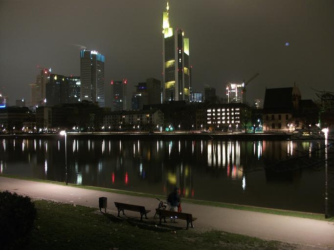 Keywords: frankfurt germany city cities water river bay reflections skyscrapers buildings architecture outside lights glow beautiful