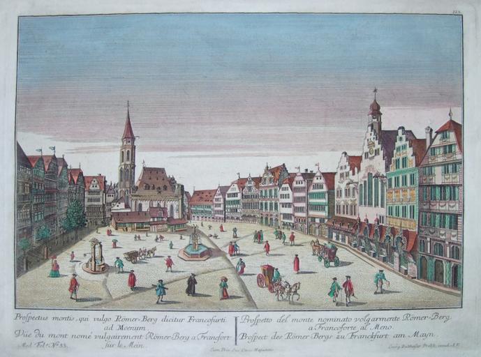 | Keywords: Frankfurt Guckkastenbild Römerberg.jpg Frankfurt am Main Guckkastenbild des Römerbergs žProspect des Römer-Bergs zu Franckfurt am Mayn Motivmaß 41 cm x 26 9 cm ebay de ca 1770 Balthasar Probst PD-old Peep show cards Alte Nikolaikirche Frankfurt am Main Border is intentional Balthasar Probst |