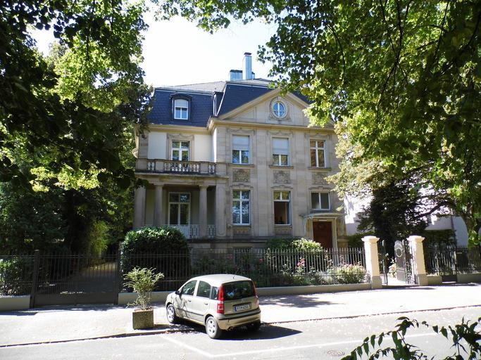 Keywords: Frankfurt, Zeppelinallee 69.JPG Rohmer 13 02 1859 Frankfurt + 28 02 1912 Meran heiratete am 23 07 1896 Frau Helena + 05 12 1877 Mexico + 03 10 1960 N N geborene de Chapeaurouge Sie wurde in Mexico geboren ihre Familie stammte aus der Schweiz Familienzweige zählten später zum vermögenden Bürgertum von Hamburg Quelle Bockenheim zwischen gestern und morgen VHS Ffm 1979/80 und Frankfurter Hauptfriedhof Grabplatten bei Gruft 46 Wilhelm Rohmer ist Namenspatron der Rohmerstraße und des Rohmerplatzes Heute ist die Villa Sitz eines Industrieverbandes Der Großvater von Wilhelm Rohmer fand seine Ruhestätte keine Gruft auf dem alten Bockenheimer Friedhof in der späteren Solmsstraße Der Stammvater der Bockenheimer Stifterfamilie Johann Conrad Rohmer 19 03 1769 in Eltersdorf bei Nürnberg + 25 11 1825 in Bockenheim war Bürger Kauf- und Handelsmann der freien Stadt Frankfurt am Main und seiner Ehefrau Johanna Dorothea Sophia Barbara geborene Peters 01 06 1787 in Wennebostel in Hannover + 13 11 1858 auf dem alten Friedhof Frankfurt Bockenheim Solmsstraße Er kaufte am 13 07 1824 von Johann Cristoph Friedrich Lippert dessen zweistöckige Villa nebst umfangreichem Park und Weiher ab Diese später sog alte Villa Rohmer lag am Eingang der Markgrafenstraße Seine Ehefrau kaufte u-a- noch 1837 Immobilen an der Leipziger Straße und verkaufte diese als partizellierte Bauplätze 1828 weiter Johann Conrad Rohmer Beerdigung auf dem neuangelegtem Friedhof Solmsstraße und nicht mehr auf dem bisherigen Friedhof an der Jakobskirche trug zur Akzeptanz dieses neuen Friedhofs wesentlich bei lag er doch eigentlich zu nahe am Schindesanger des Pfingstbrunnengeländes Nachkomme Heinrich Rohmer 03 05 1815 Hamburg + 20 03 1867 Bockenheim und Frederike Karoline Rohmer geborene d'Orville 18 03 1833 + 22 06 1909 Letztere wurde nach 1895 erfolgter Eingemeindung von Bockenheim auf dem damals neuen Frankfurter Hauptfriedhof begraben Sie ruht dort in Gruft/Grufthalle 46 Sie hatten zwei Söhne Der früh verstorbene Sohn Edwin 1863-1895 und Wilhelm 1859-1912 der das andere Anwesen zwischen Leipziger- Großen See- Kürfürstenstraße mit der sog neuen zweiten Villa Rohmer die dann abgerissen wurde mit Auflagen an die Stadt Frankfurt verkaufte Wilhelm hatte sich diese Villa in der Zeppelinallee 69 erbauen lassen Die dritte Villa Rohmer Ihm zu Ehren haben die Grundstücke in der Markgrafenstraße verpflichtende Vorgärten Quelle Bockenheim zwischen gestern und morgen VHS Ffm 1979/80 und Frankfurter Hauptfriedhof Grabplatten bei Gruft 46 2012-09-06 23 27 41 own Karsten Ratzke de Images from Wiki Loves Monuments 2012 DE-HE cc-zero Uploaded with UploadWizard Cultural heritage monuments at Zeppelinallee |
