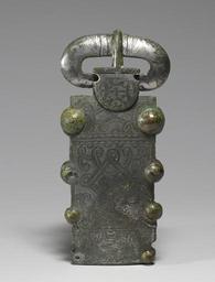 | Keywords: Frankish - Belt Buckle - Walters 542350.jpg Finely ornamented belt buckles like this were worn by both men and women of high social status during the 7th century Complex curving patterns of incised interlace design fill all available space and characterize the ornamental style of the Franks and other Germanic peoples at this time This buckle was excavated at Tabariane in Aquitaine France in 1908 A nearly identical buckle was found at this same site and now belongs to the Worcester Art Museum in Massachusetts century 7 Early Medieval tin-plated bronze cm 8 3 18 1 6 accession number 54 2350 36636 Excavated at Tabariane Commune of Teilhet Ariege France 1908 Joseph Brummer New York Joseph Brummer Sale Parke-Bernet Galleries New York May 12 1949 no 280 Walters Art Museum 1949 by purchase Museum purchase 1949 Jewelry - Ancient to Modern The Walters Art Gallery Baltimore 1979-1980 place of origin Burgundy France Walters Art Museum license Medieval metalwork in the Walters Art Museum Merovingian belt buckles Media contributed by the Walters Art Museum needs category review Sösdala-Untersiebenbrunn style |